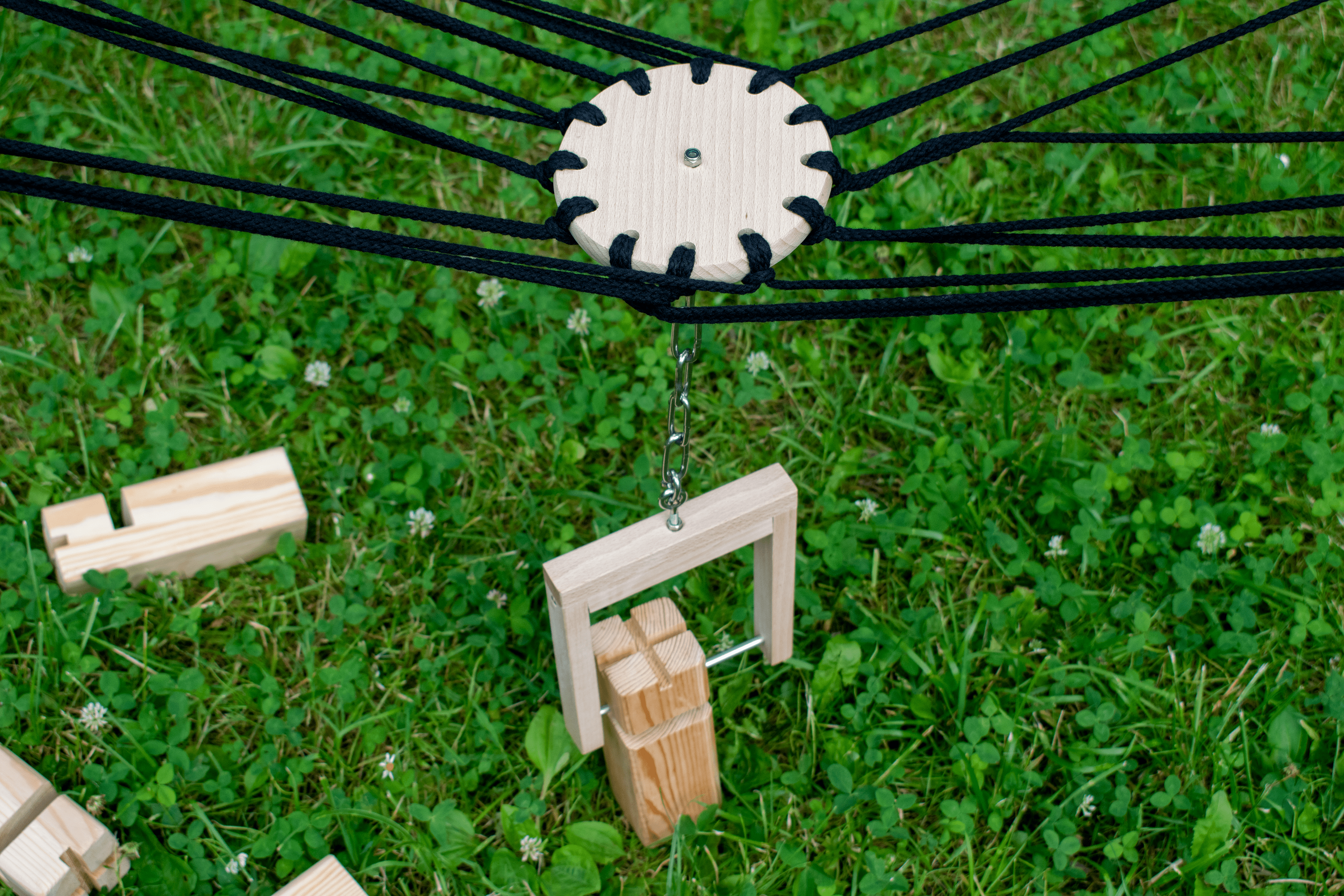 - 1 crane (beech or stainless steel_ with 34 strings (2 mx 3 mm thick, intertwined eight times)