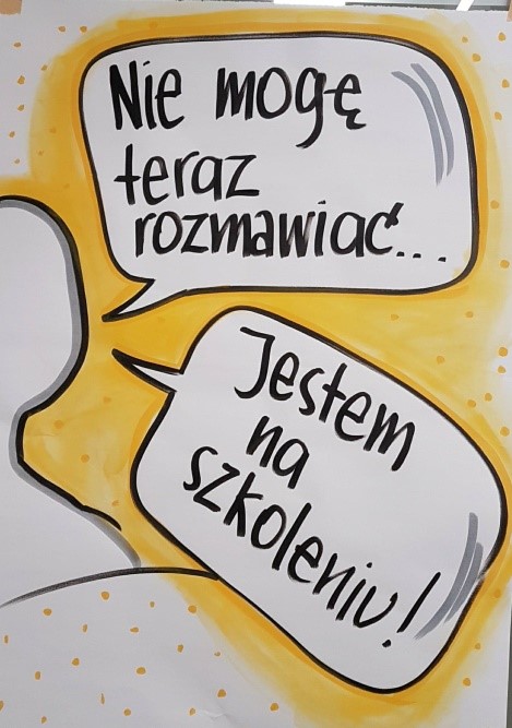 Najpierw piszemy i rysujemy na czarno a później dodajemy kolory i cienie. Napisy i kontury rysunków będą w ten sposób dobrze widoczne i czytelne na flipcharcie.