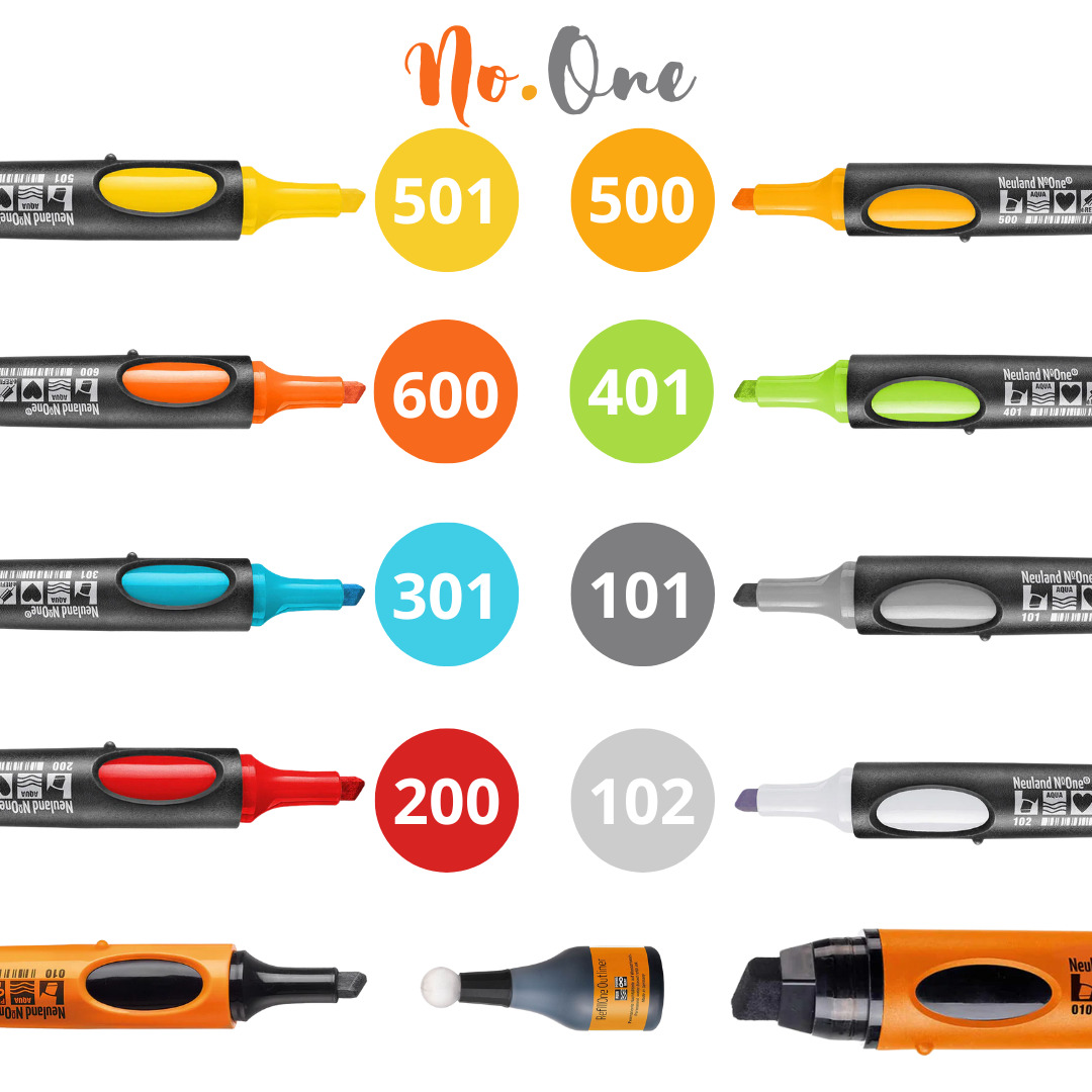 Absolutny zestaw startowy - dla początkujących, którzy oswajają się z mazakami Neuland® i chcą na początek pracować mazakami o standardowej skośnej końcówce czyli NoOne.
