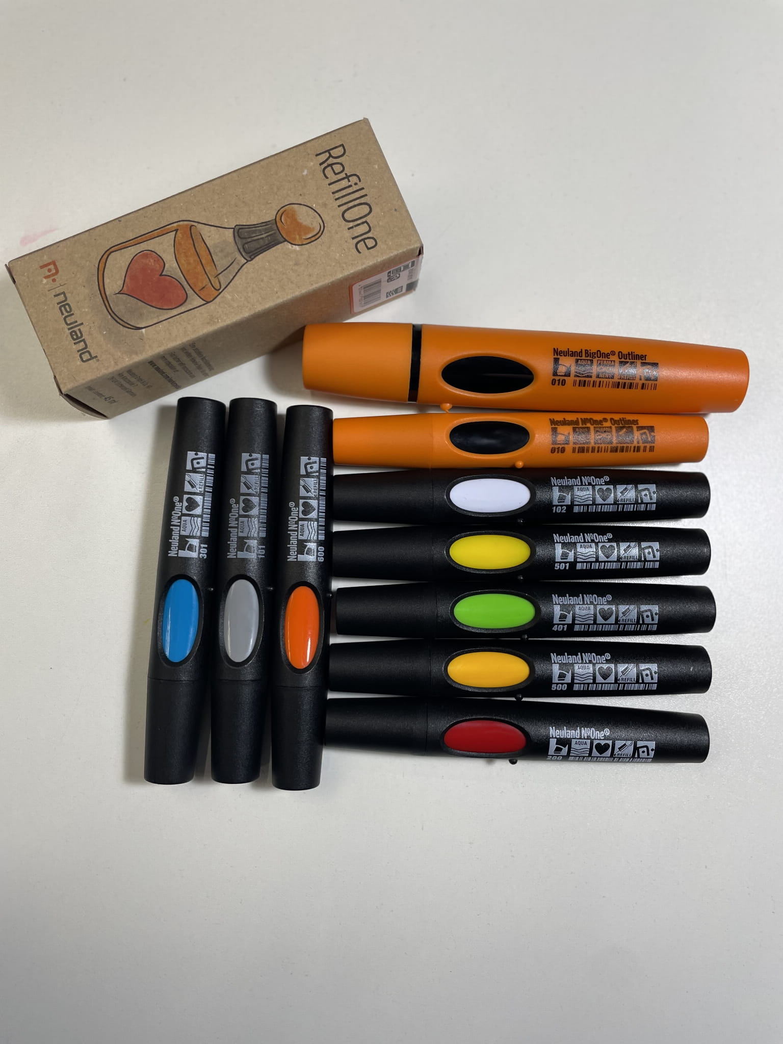 Taniej w zestawie!Pojedynczy marker Neuland No.One® ze skośną końcówką z możliwością ponownego napełniania dostępny w 49 różnych kolorach