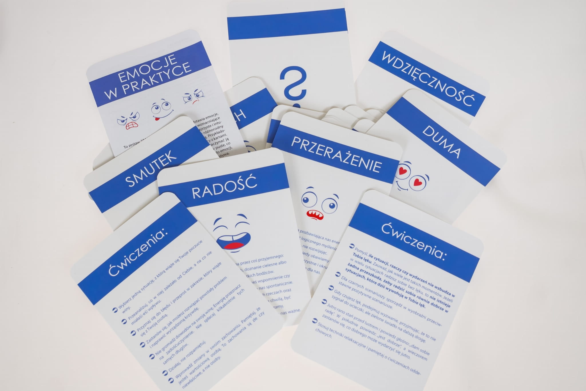 - 2 karty ze znakiem zapytania pomocne w wykreowaniu emocji, których nie ma na kartach,