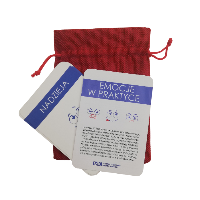 Karty ułatwiają zbudowanie relacji terapeutycznej, wzbogacają warsztat pracy z klientem /pacjentem. Można z emocjami pracować całą sesję lub zaczynać ją jedną z kart.
