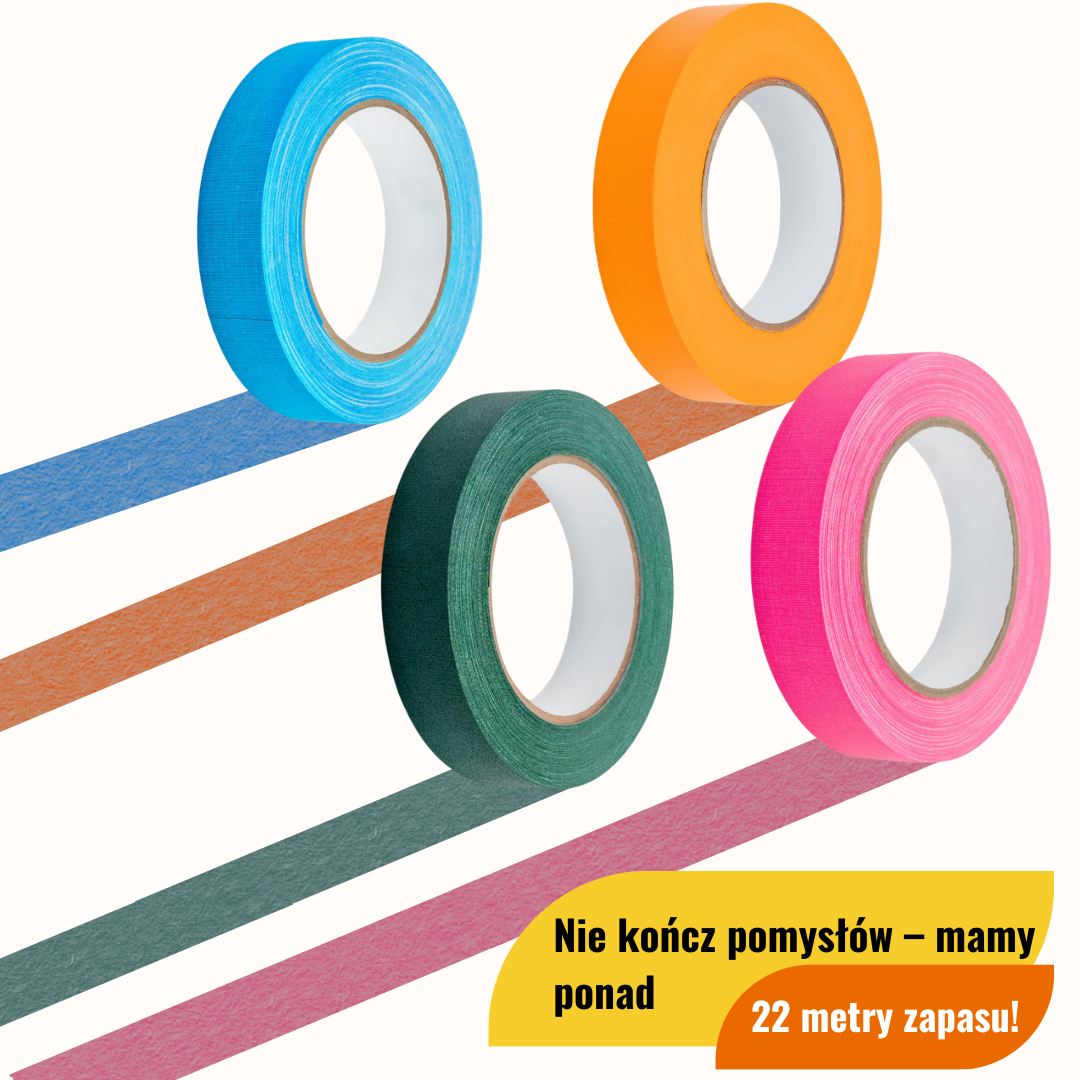 Dłuższa wersja taśmy papierowej do prostych linii i oznaczeń na ścianach i tablicach. Świetna do tworzenia siatek, ram i struktur wizualnych. Również dostępna w różnych kolorach.