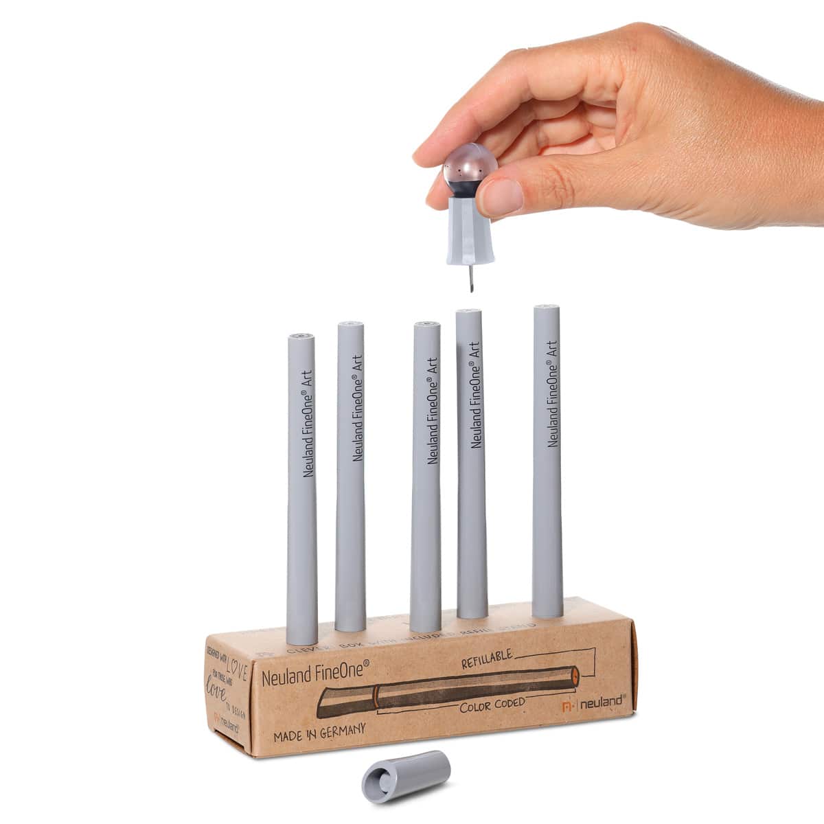 - 5 x cienki marker do papieru z pędzelkową końcówką Neuland FineOne® Art w pojedynczych kolorach,