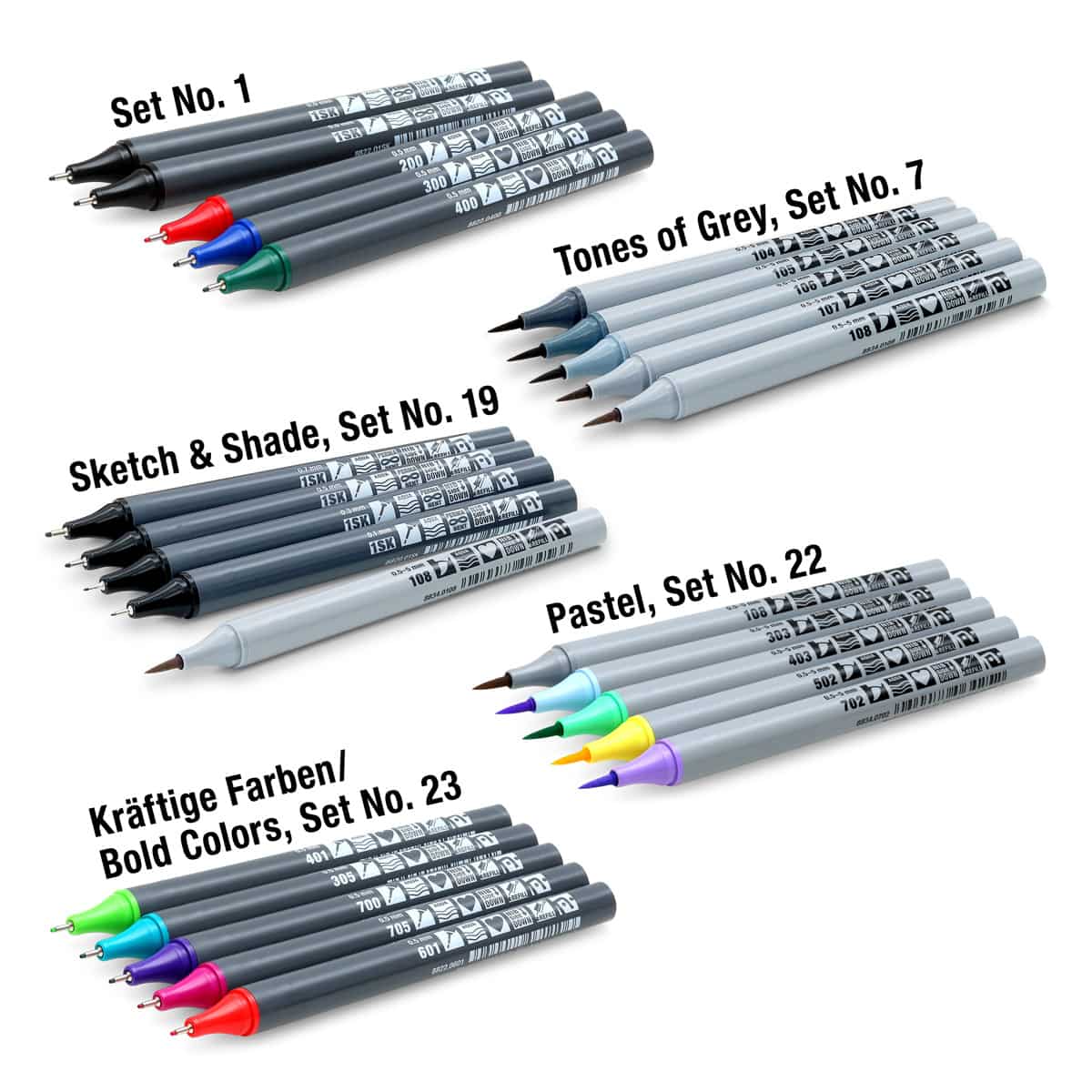Dostępne zestawy pięciu markerów Neuland FineOne® Art: