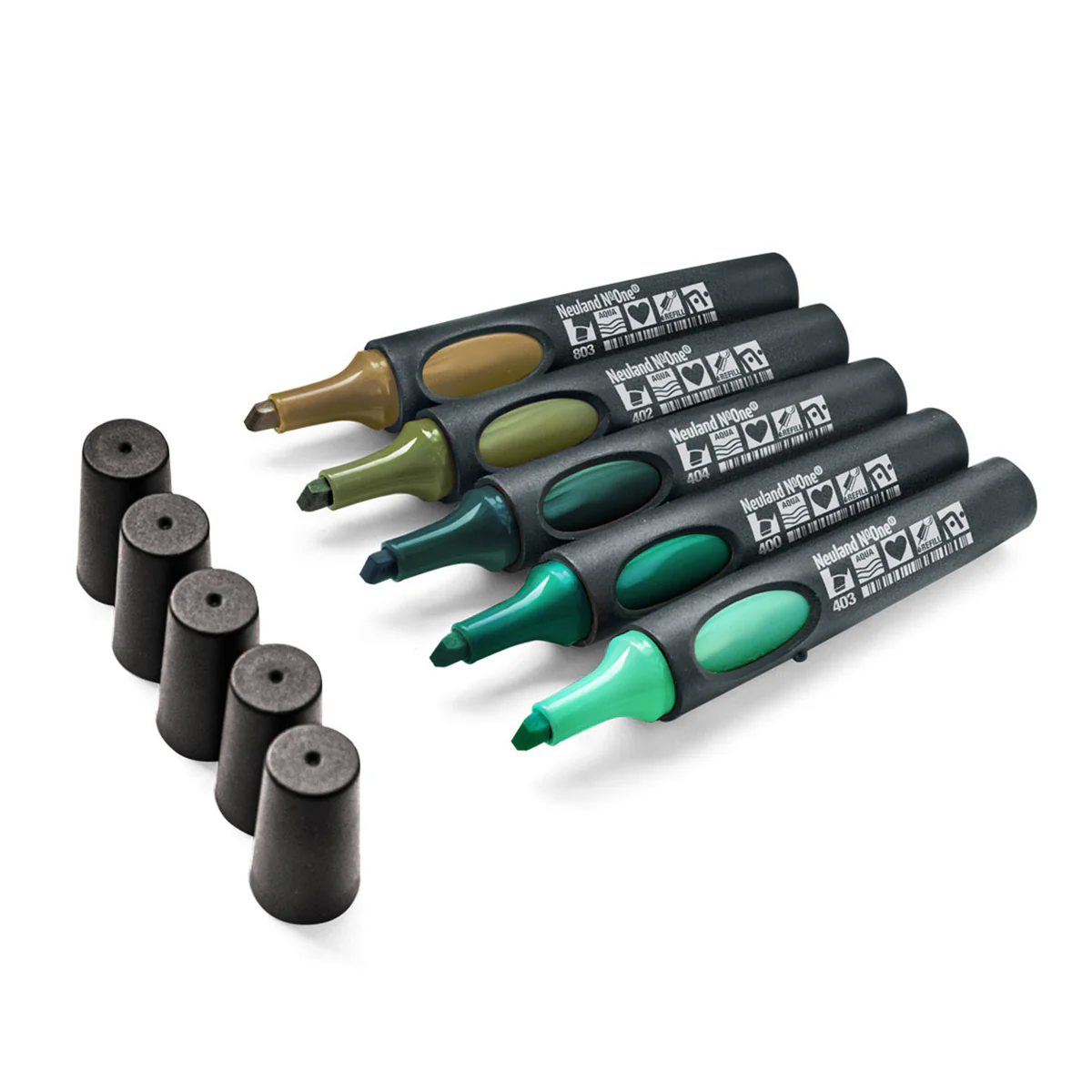 Zestaw pięciu markerów Neuland No.One® z końcówką skośną w 14 różnych wariantach
